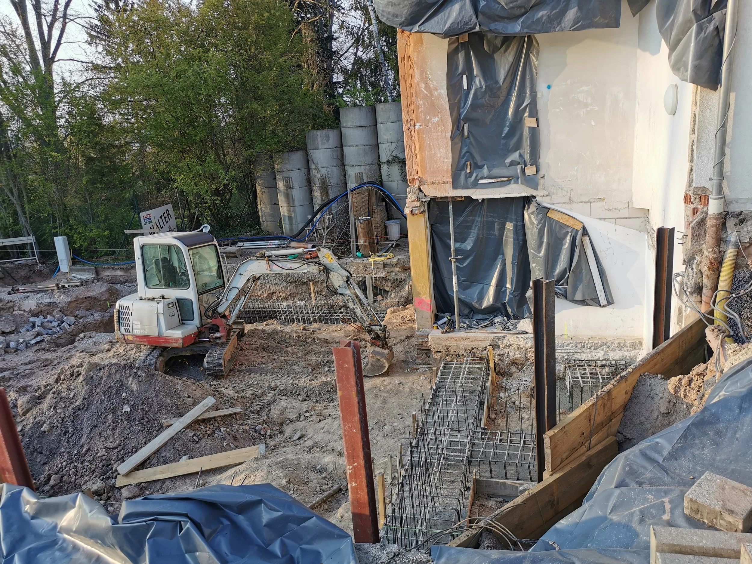 Der Rückbau geht dem Ende entgegen, noch 3 Tage bis zum Beginn des Neubau. Die letzten Reste und das alte Fundament sind schon weg. Es war einiges verbaut, was so nicht erwartet wurde.